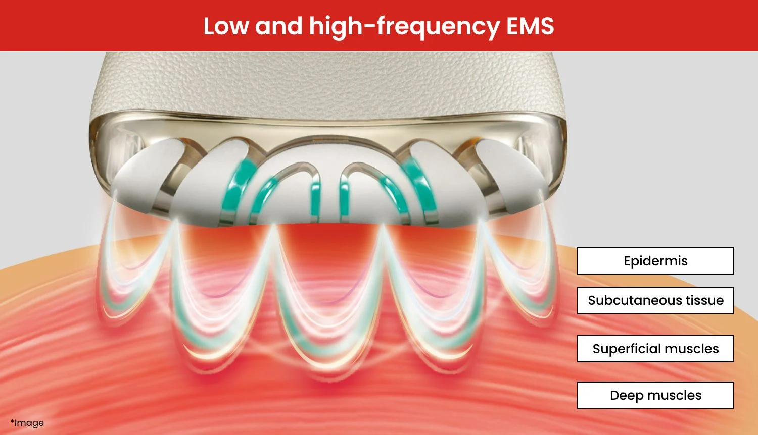 Ierīcei ir īpaši izstrādāta galviņa ar septiņiem plaša kontakta elektrodiem, kas ideāli pieguļ lielajam un mazajam vaigu muskulim, kā arī dziļajiem kakla muskuļiem. Šie muskuļi ir vissvarīgākie, lai panāktu efektīvu sejas ādas nostiprināšanu.
